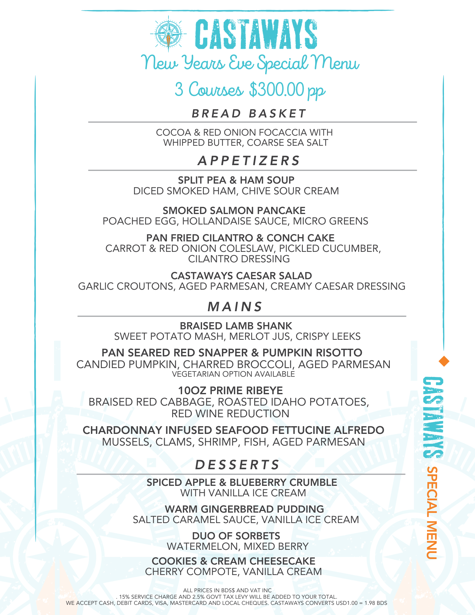 New Year’s Menu 3 courses $300. bbd